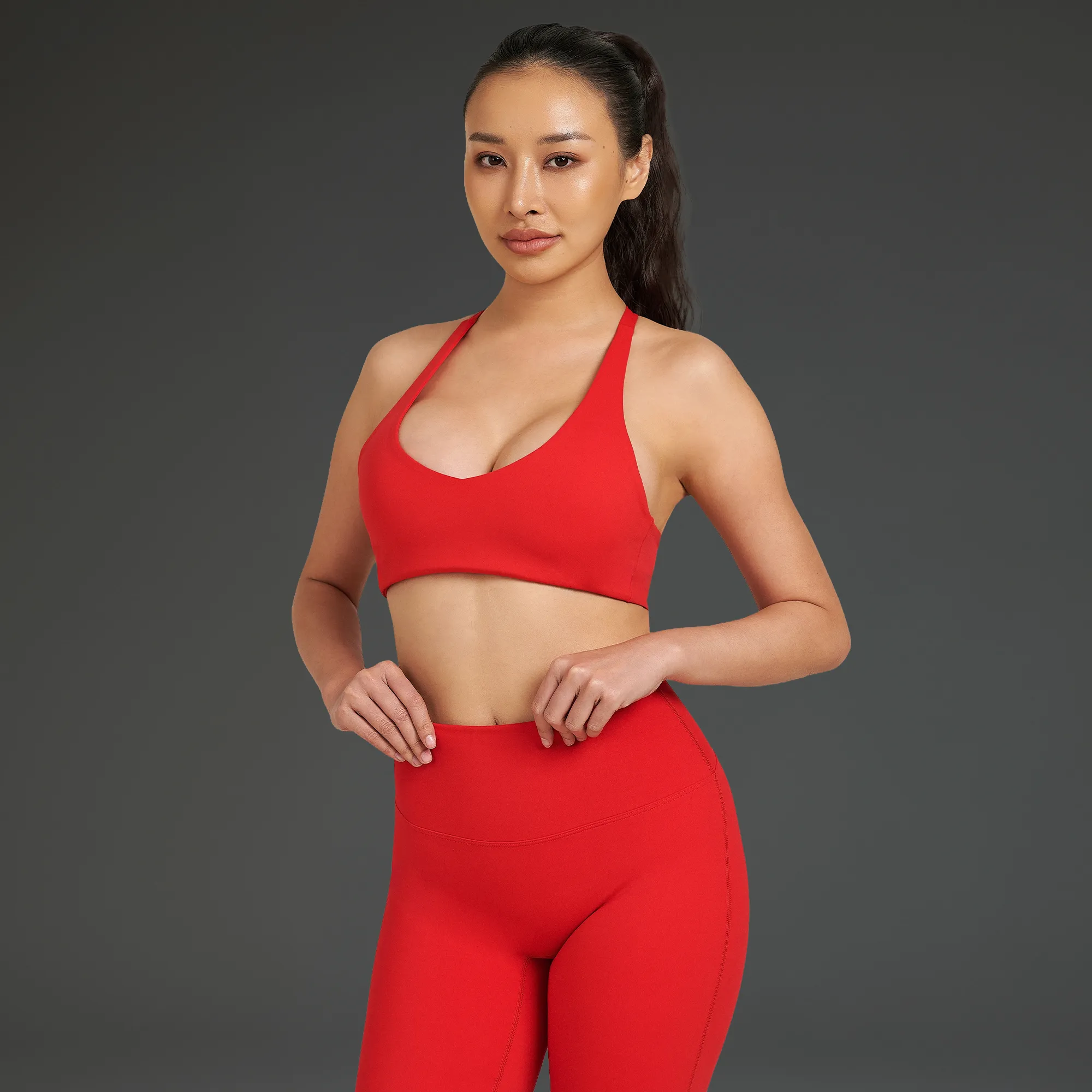 The Curva Bra features a clean, minimal front and an elegant open-back design with slim criss-cross straps that frame the shoulders and upper back. A wide underband provides secure, stay-in-place support while allowing full freedom of movement and a naturally lifted shape.