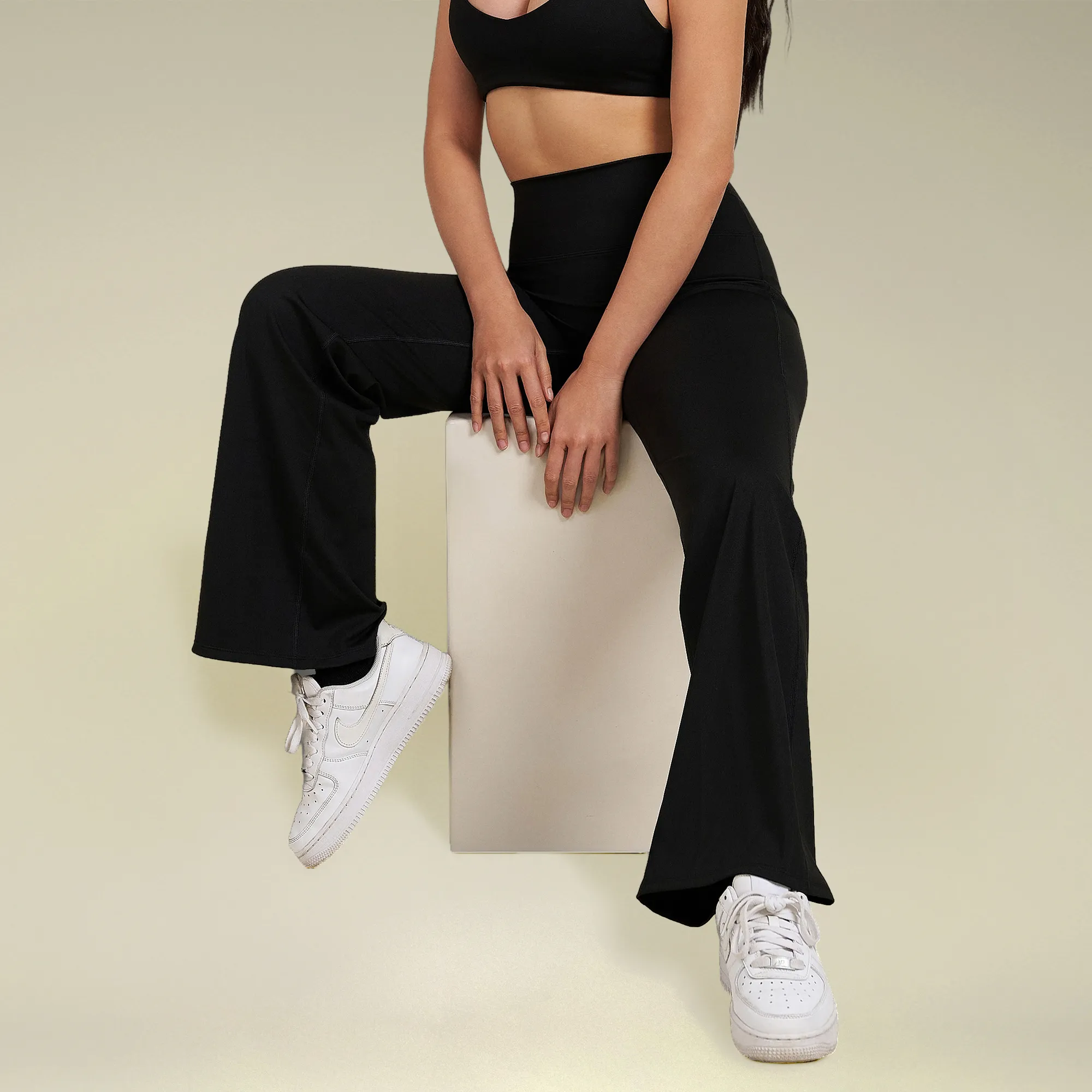 Flarely Leggings by Berryfit are elevated wide-leg activewear pants designed to sculpt, elongate, and move with your body. These modern activewear leggings are fitted through the waist and hips, flowing into a soft wide-leg silhouette that visually lengthens the legs and creates a balanced, flattering shape.